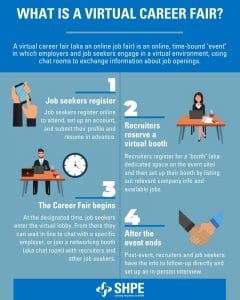 SHPE’s Career Center has the technology to execute a seamless online career fair. And we will supplement the career fair with several professional development webinar sessions focused on the needs of job seekers.